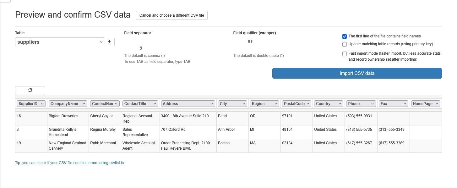 - Verify your CSV file: Use an online CSV linting tool such as CSV Lint to check your file for structural issues before importing.